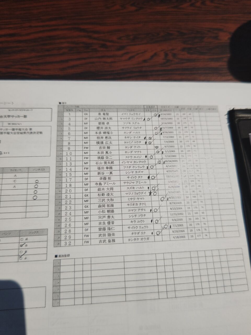 ちなみに、これ書いている時点で、東北大学サッカーリーグのメンバー表の欄は、まだ空白。