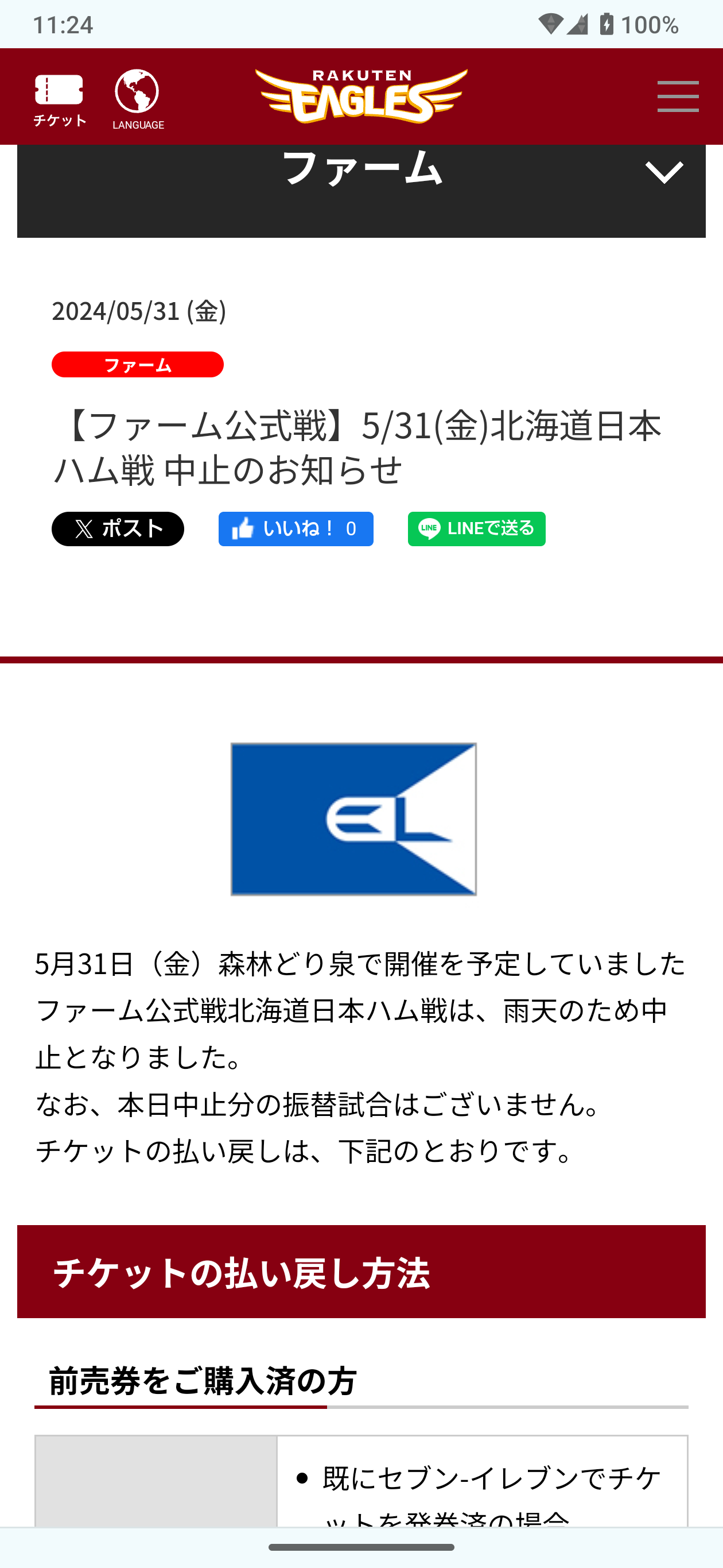 ◎プロ野球イースタンリーグ公式戦 東北楽天ゴールデンイーグルスvs北海道日本ハムファイターズ 8回戦(東北1勝1分5敗) 2024年5月31日(金)13時 楽天イーグルス泉練習場