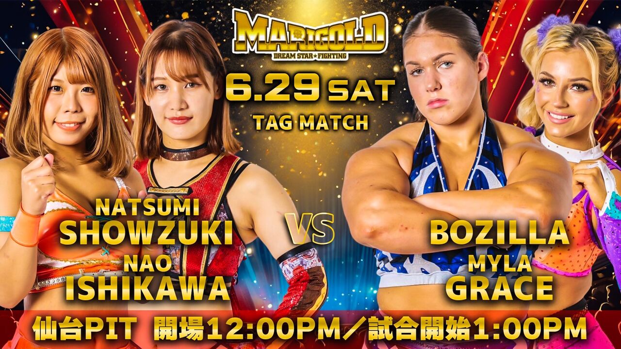 ○ポジラ、マイラ・グレース(10分53秒、エビ固め)翔月なつみ、石川奈青×