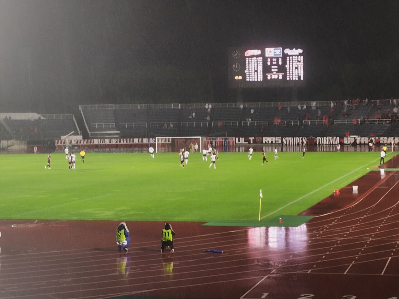 と思ったら、着いた時点ではぽつりぽつりだったんだが、試合開始の頃に激しく降り出しやがった。○天皇杯JFA第104回全日本サッカー選手権大会3回戦【72】北海道コンサドーレ札幌(J1・赤)vsモンテディオ山形(J2・青白) 2024年7月10日(水)19時 山形県総合運動公園陸上競技場 雨 23.4℃ 83% 風:無 主審:西村雄一 副審:熊谷幸剛、大矢充 4審:植松健太朗 3347人