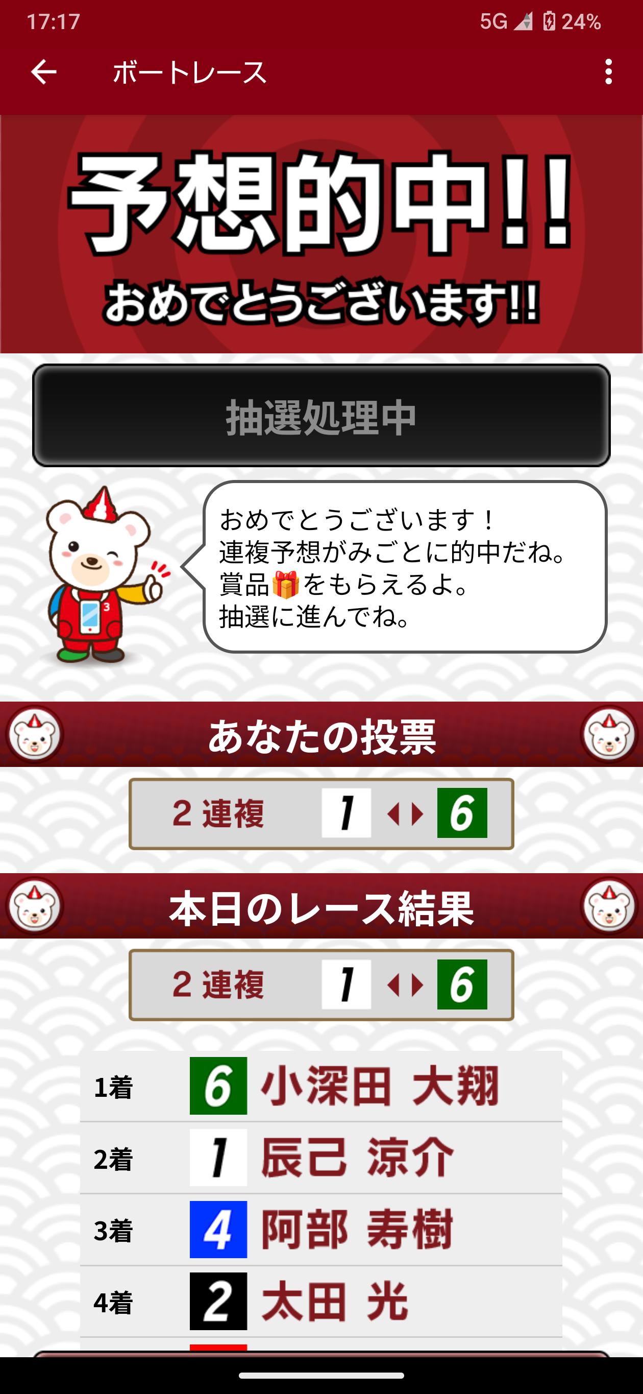 なお、4回裏のボートレースチャレンジ。今季47試合目の参加で、ようやく初勝利!野球観戦 47試合目。