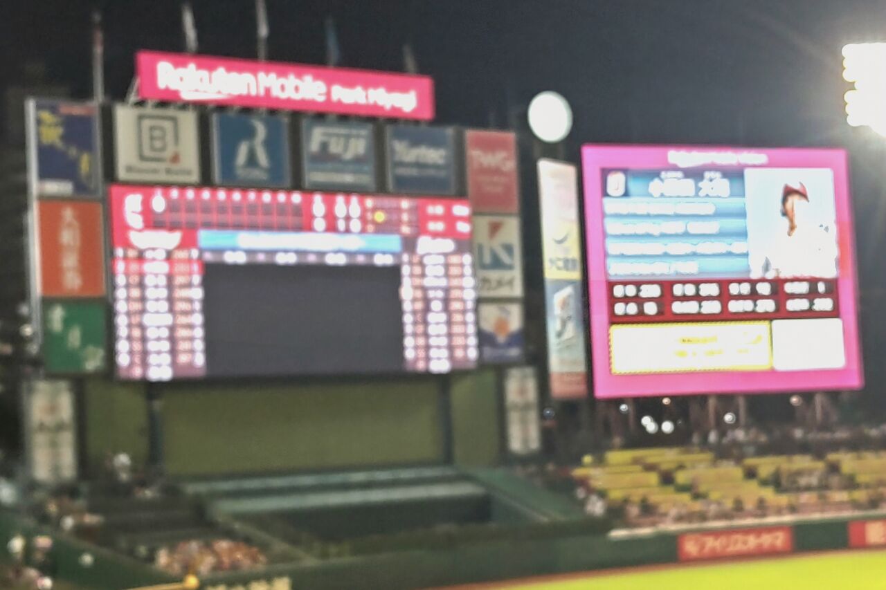7回裏。投手・横山。二死二塁で、3番・辰己で申告敬遠w4番浅村、案の定中飛で勝ち越せず。。。ある意味賢明な判断、かw