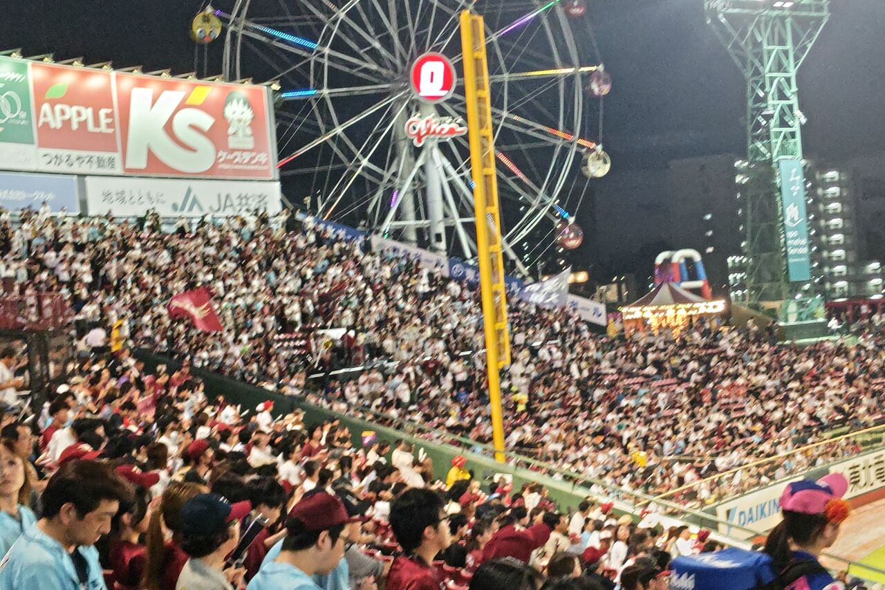 ◎(マクドナルド)せんだいハウス応援ナイター パーソルプロ野球パシフィックリーグ公式戦 東北楽天ゴールデンイーグルス(白)vs千葉ロッテマリーンズ(黒) 21回戦(東北9勝11敗1分) 2024年9月17日(火)18時 県営宮城球場 曇一時晴 球審:有隅 21793人 3時間57分