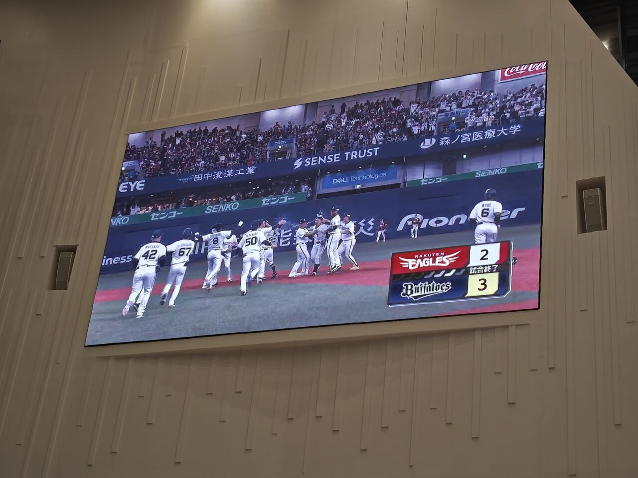 9回表。オリックスはクローザーのマチャド。イーグルス先頭のマスター阿部がレフトへ二塁打。小深田は送ろうとするもファウル、しかし二ゴロで一死三塁。ここで打者はルーキー宗山、ライトへ同点タイムリー!プロ初安打!そこから小郷もヒットで一二塁も、辰己、浅村と連続三振で同点止まり。