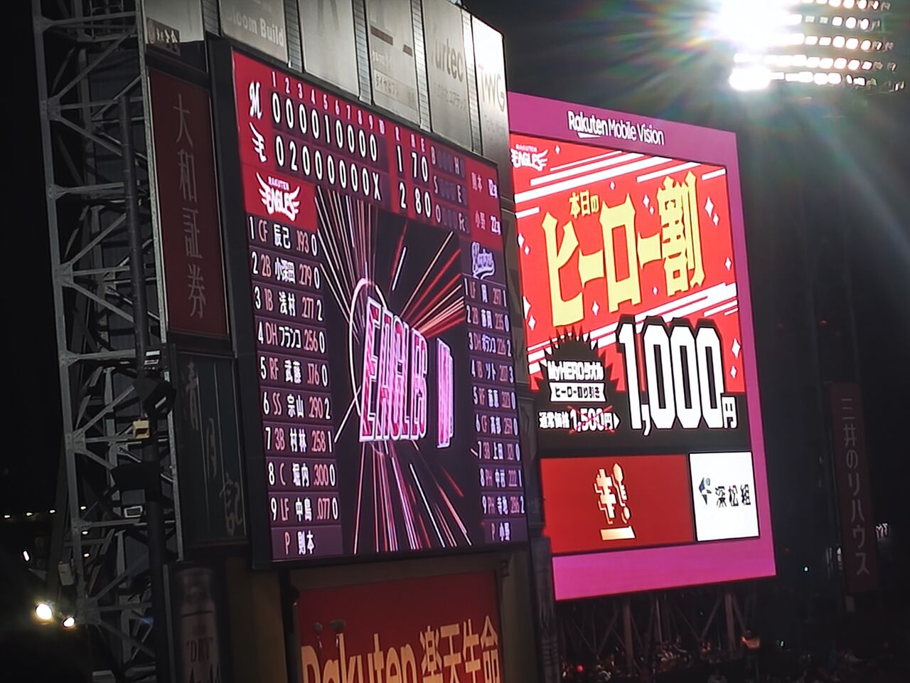 そのただ券(当日引き換え)が左翼イーグルス応援指定席とかもうね。
