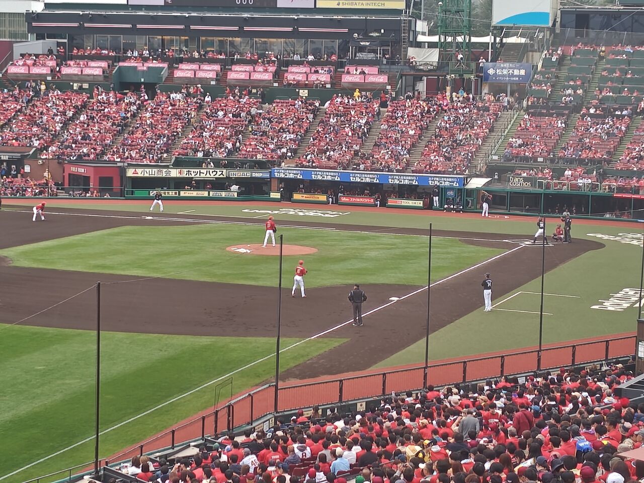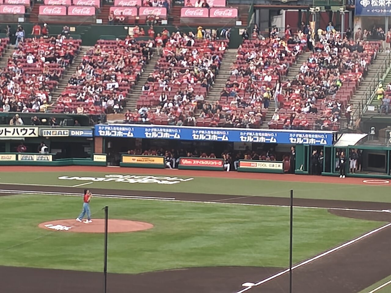 果たして、久保ちゃんの出番(12時49分)までに買えるのか?と思ったら、何とかなった。席に着いたくらいの時間で、ちょうど久保ちゃんのセレモニアルピッチ!・・・まぁ、ストライク。