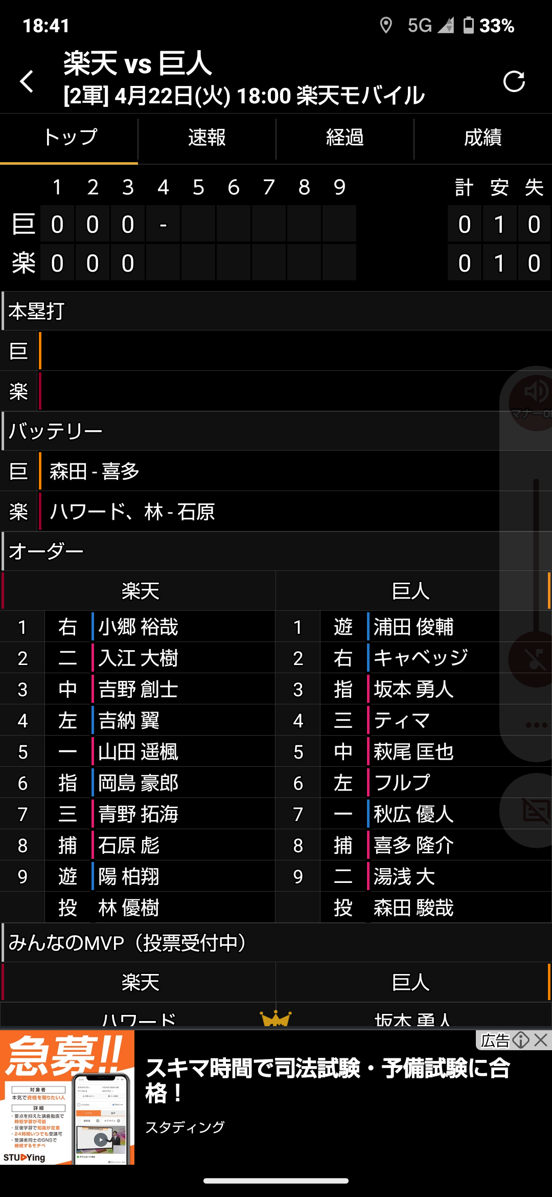 今日はイースタンの宮城球場ナイターだったが、着いた時点で、イーグルスの先発・ハワードは3回投げて降板してたw◎プロ野球イースタンリーグ公式戦 東北楽天ゴールデンイーグルスvs読売ジャイアンツ 2025年4月22日(火)18時 県営宮城球場 曇 球審:山本 2064人