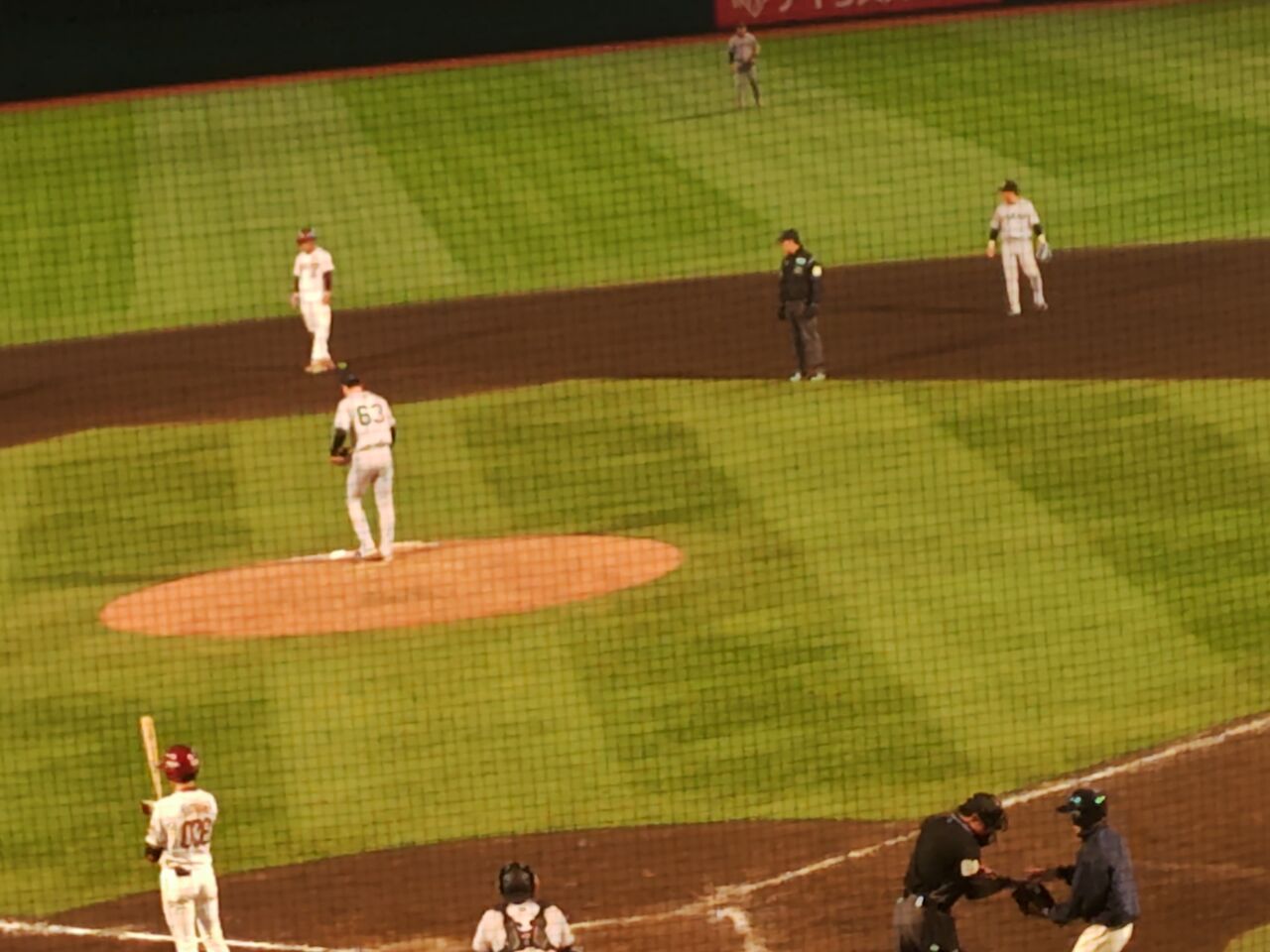 5回裏、一死二三塁から、陽柏翔の二ゴロの間に走者ホームイン、イーグルス先制。