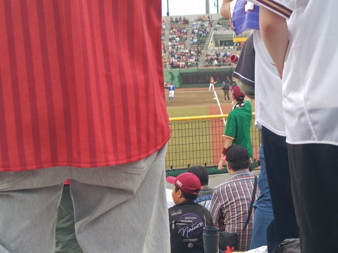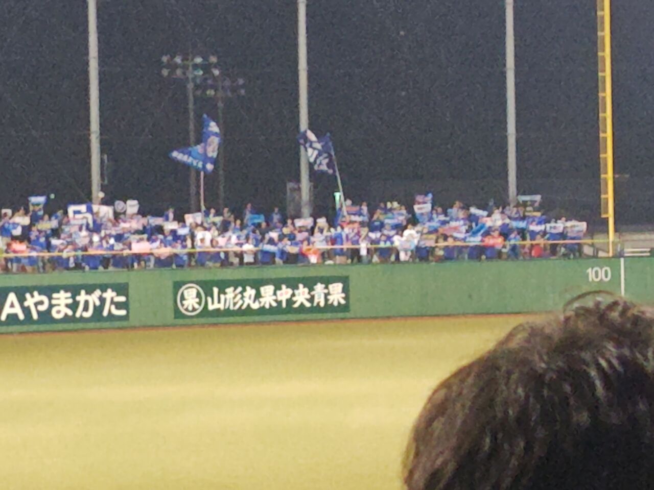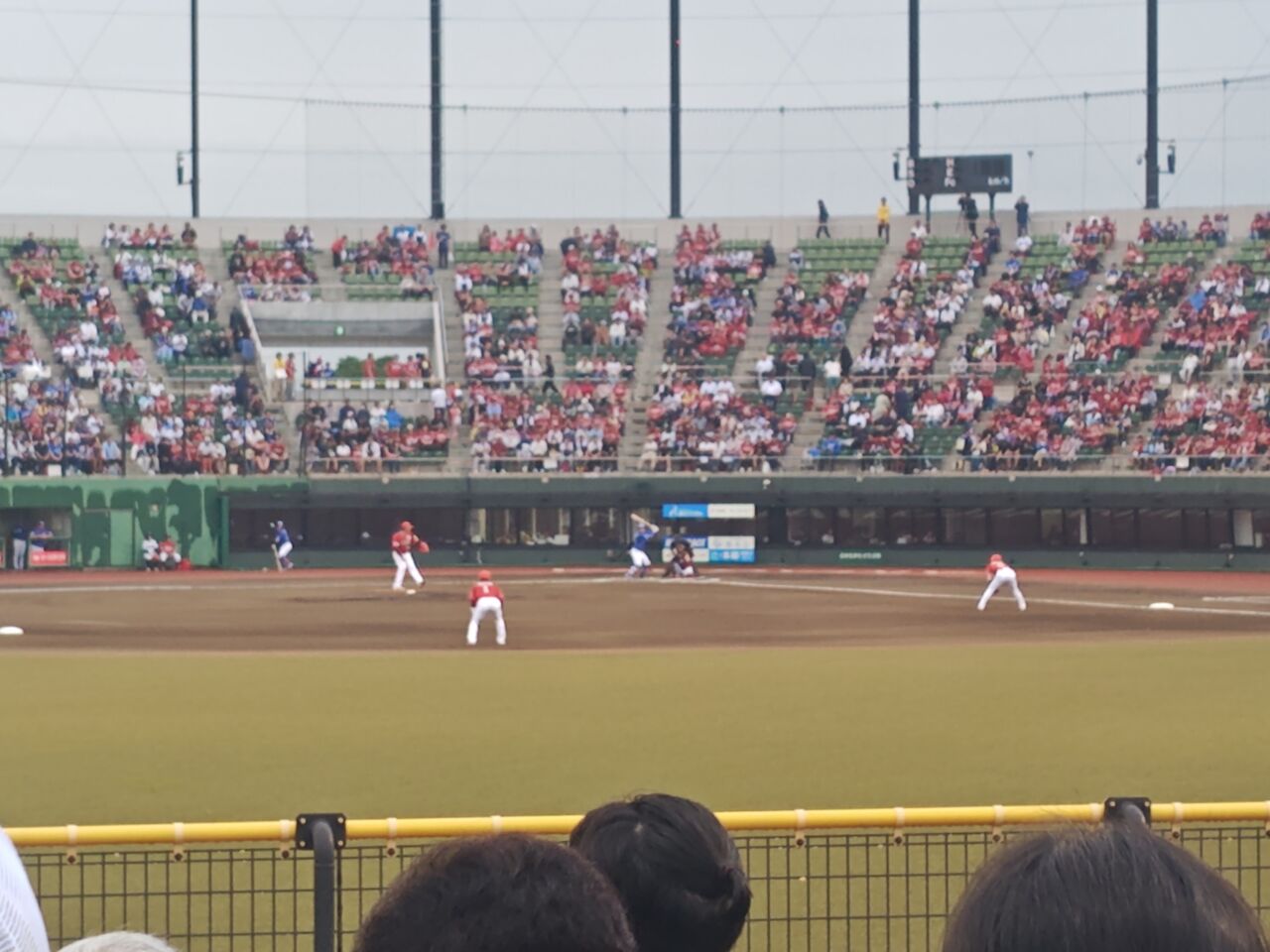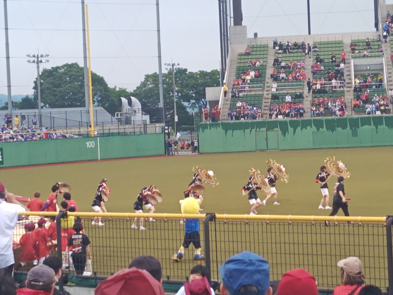 きらやかスタジアムに行ったのは、2019年以来(イーグルスが試合するのは2018年以降)。行くのを決めたのが出遅れたんで、球場から徒歩15分のビッグウィングの臨時駐車場(1500円)。雨予報だったが、試合開始くらいで上がった。