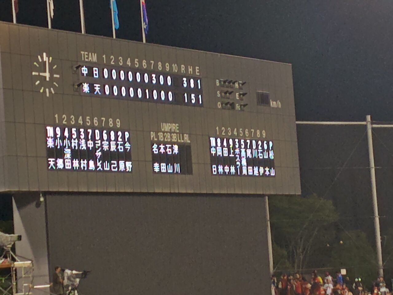 マラーとヤフーレの投手戦。と思ったら、6回に村林がイーグルス応援団席を直撃する先制ホームらーん!