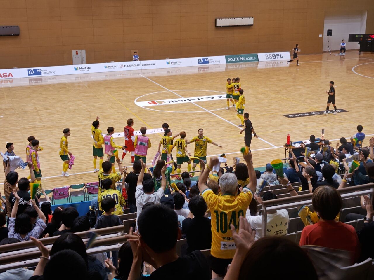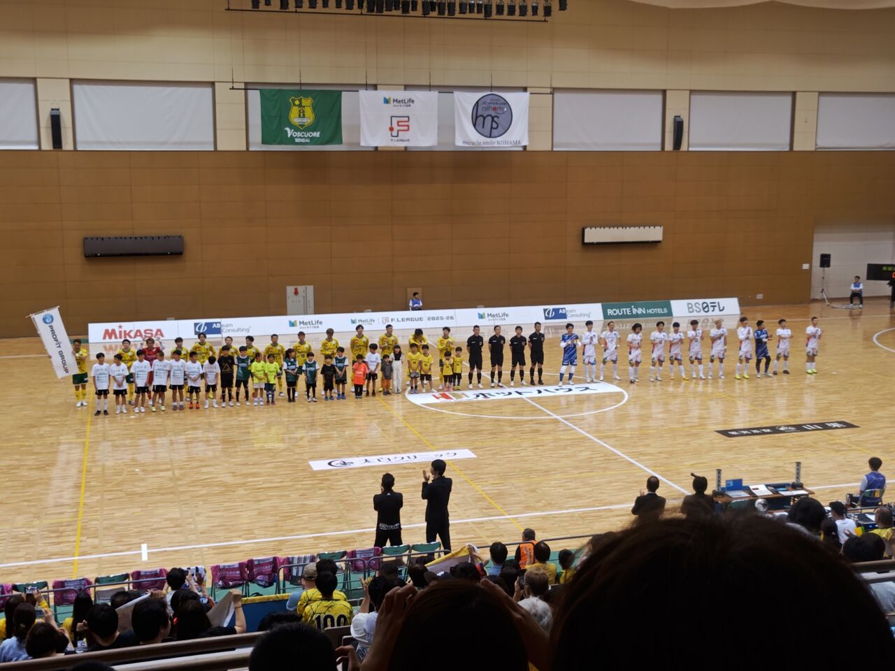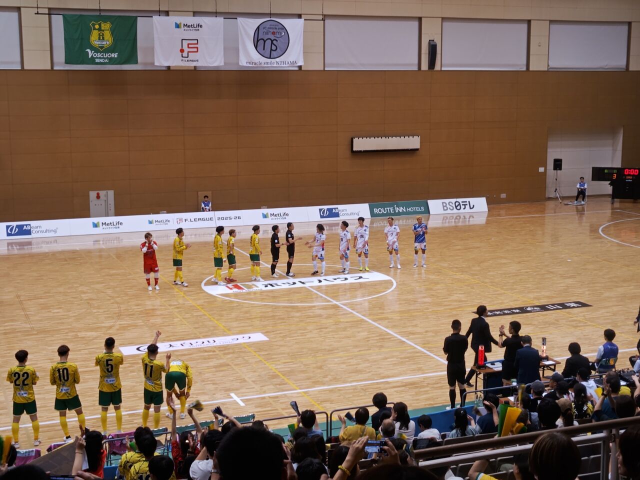 日本サッカー後援会を2024年で辞めたので、きっちり1500円支払っての観戦w◎プロフィットグループマッチデー メットライフ生命Fリーグ2025−26ディビジョン2開幕戦 ヴォスクオーレ仙台(黄)vsミラクルスマイル新居浜(白) 2025年6月14日(土)14時 仙台市青葉体育館 主審:田中二郎 929人 公式記録