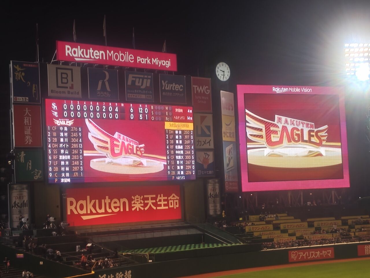 しかも、火曜の時点で(今日だけ有効のクーポンがばらまかれたおかげで)今日は外野席・三塁側内野B以下の席が満席だったんだが、蓋を開けたらそれなりにがらがーがwww◎せんだいハウスナイター パーソルプロ野球パシフィックリーグ公式戦 東北楽天ゴールデンイーグルス(白)vs福岡ソフトバンクホークス(黒) 24回戦(東北11勝13敗) 2025年9月25日(木)18時 県営宮城球場 曇一時雨 球審:岩下 23366人 3時間30分