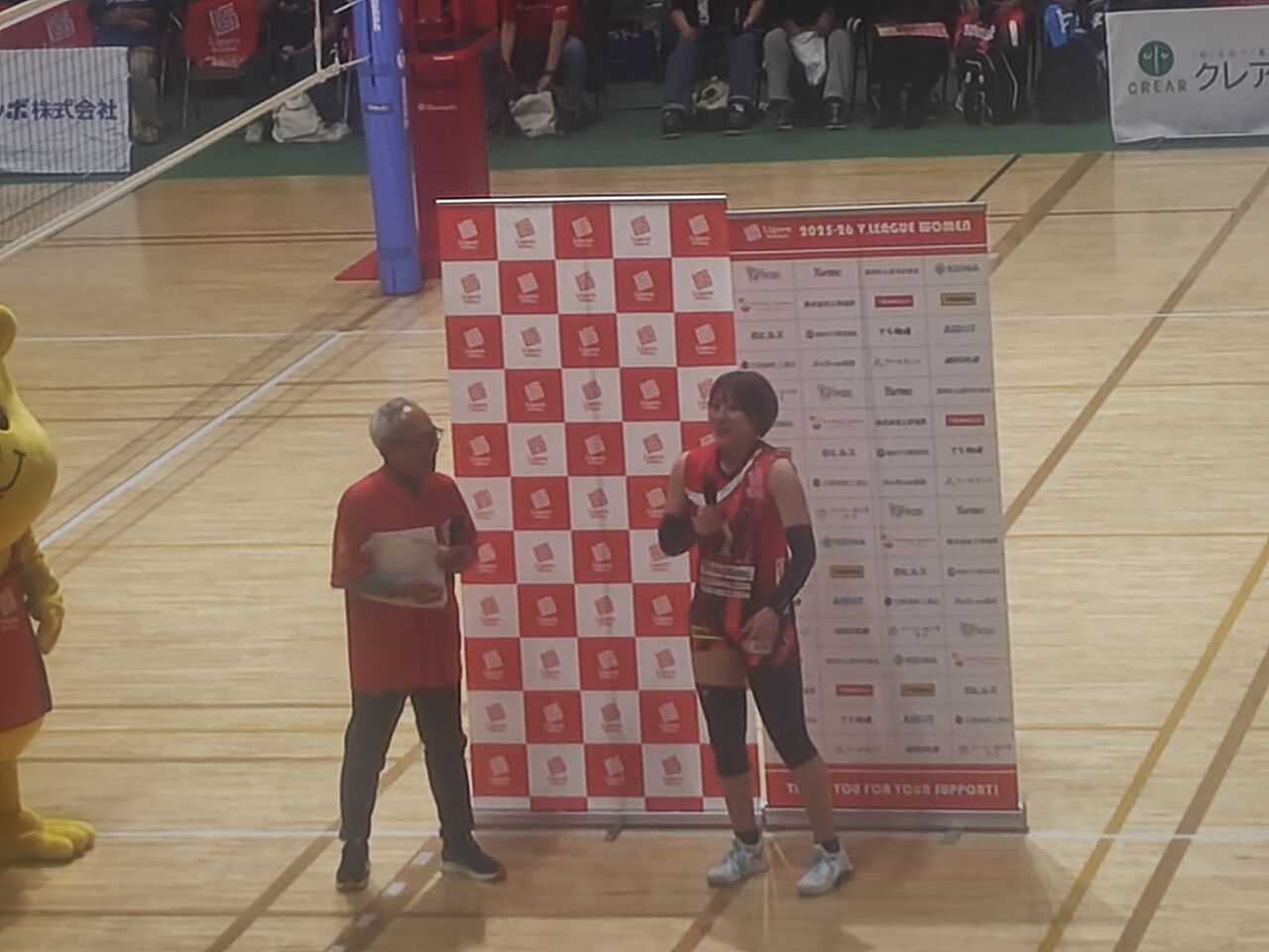 (いや、おととしまでは、リガーレのリベロ=佐藤あり紗一人、というイメージが強くて)そして、配布されたハリセンを見て。・・・リガーレ、メンバーが17人もいる!大体、13,14名、ベンチ入りメンバーぎりぎり、というのがこれまでのあれだったのに、ずいぶん層が厚くなったね。。。