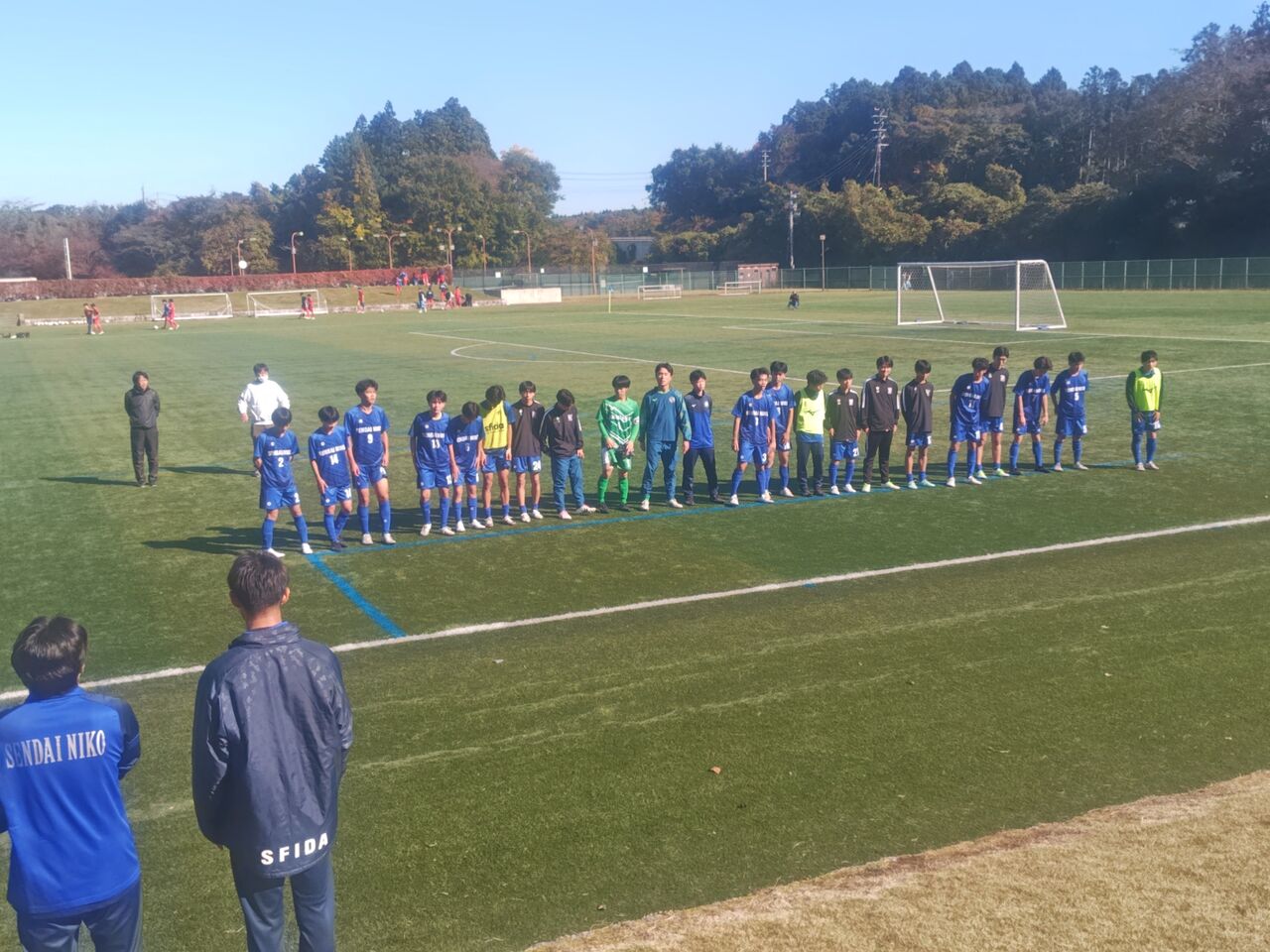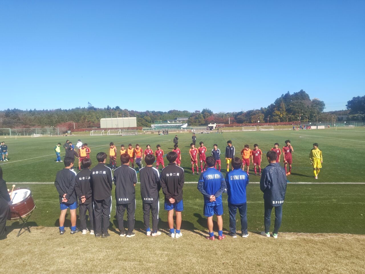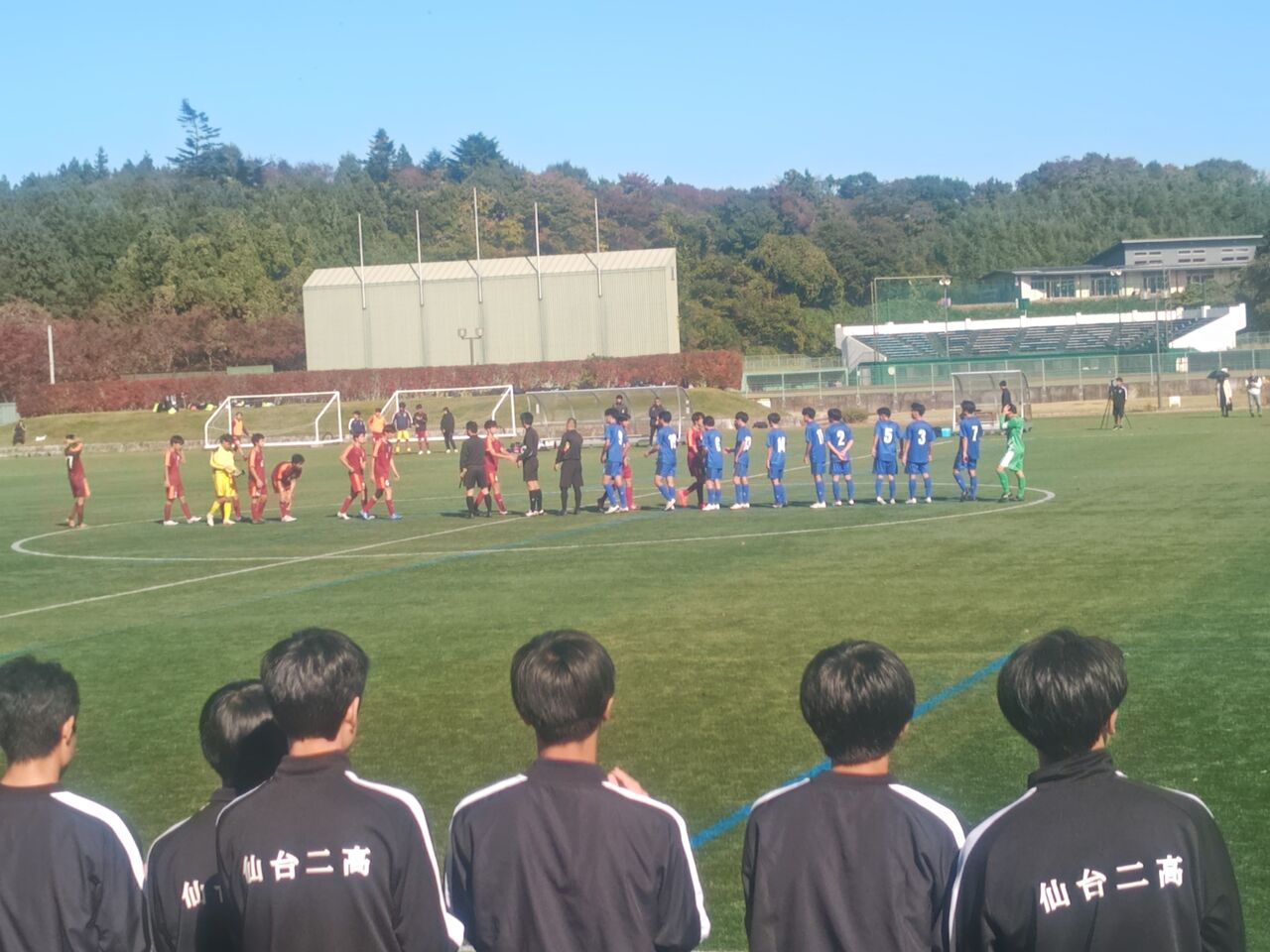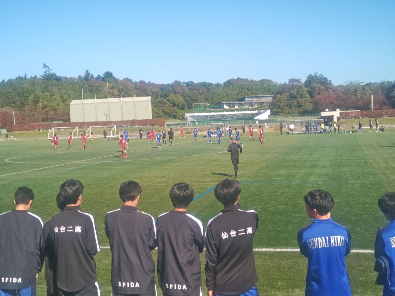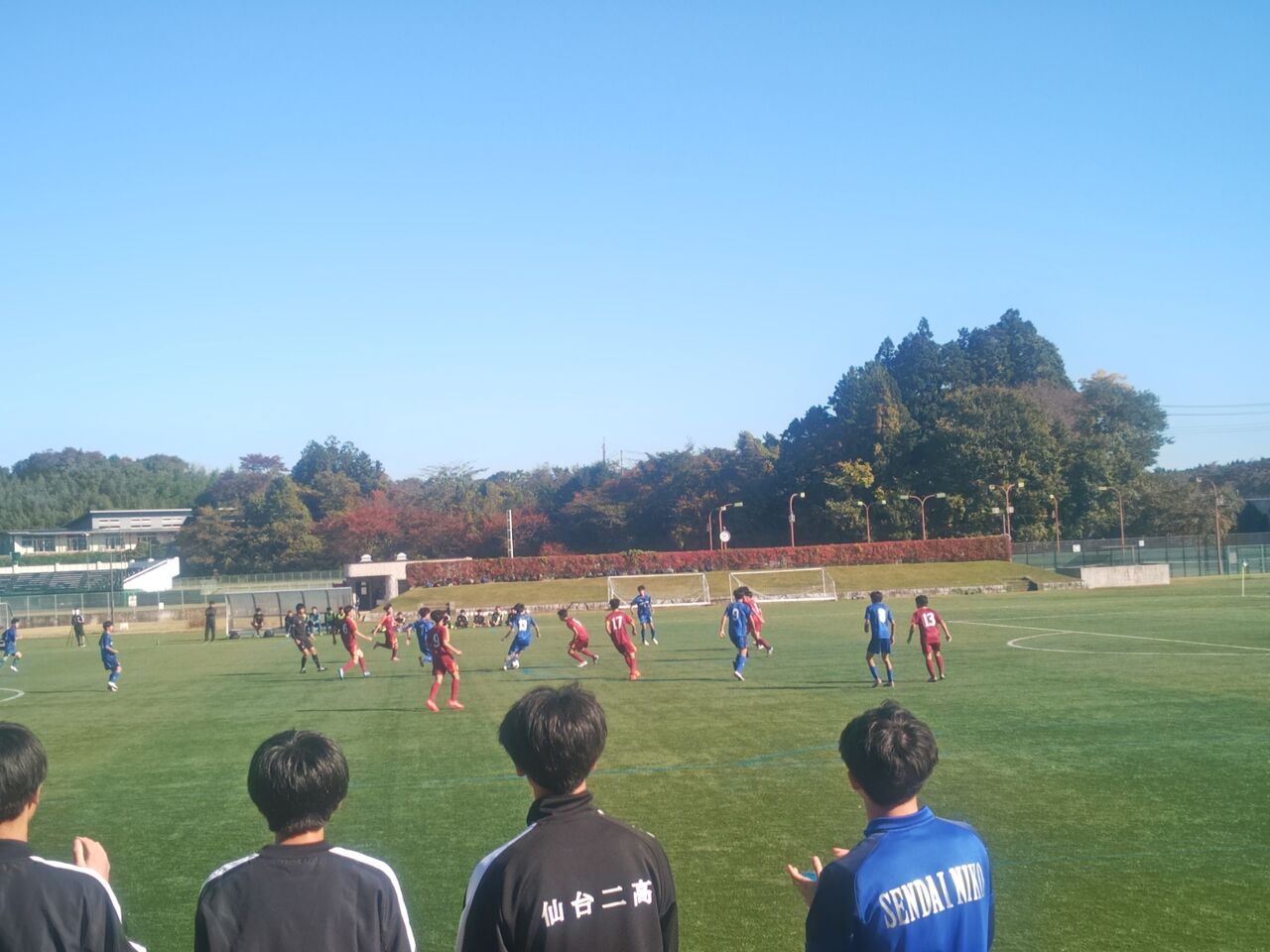 ◎宮城県高校サッカー新人大会1回戦 仙台第二高等学校(青)vs仙台第一高等学校(赤) 2025年11月5日(水)9時30分 松島運動公園サッカー場 晴 風:微 50人(目測) *35分ハーフ