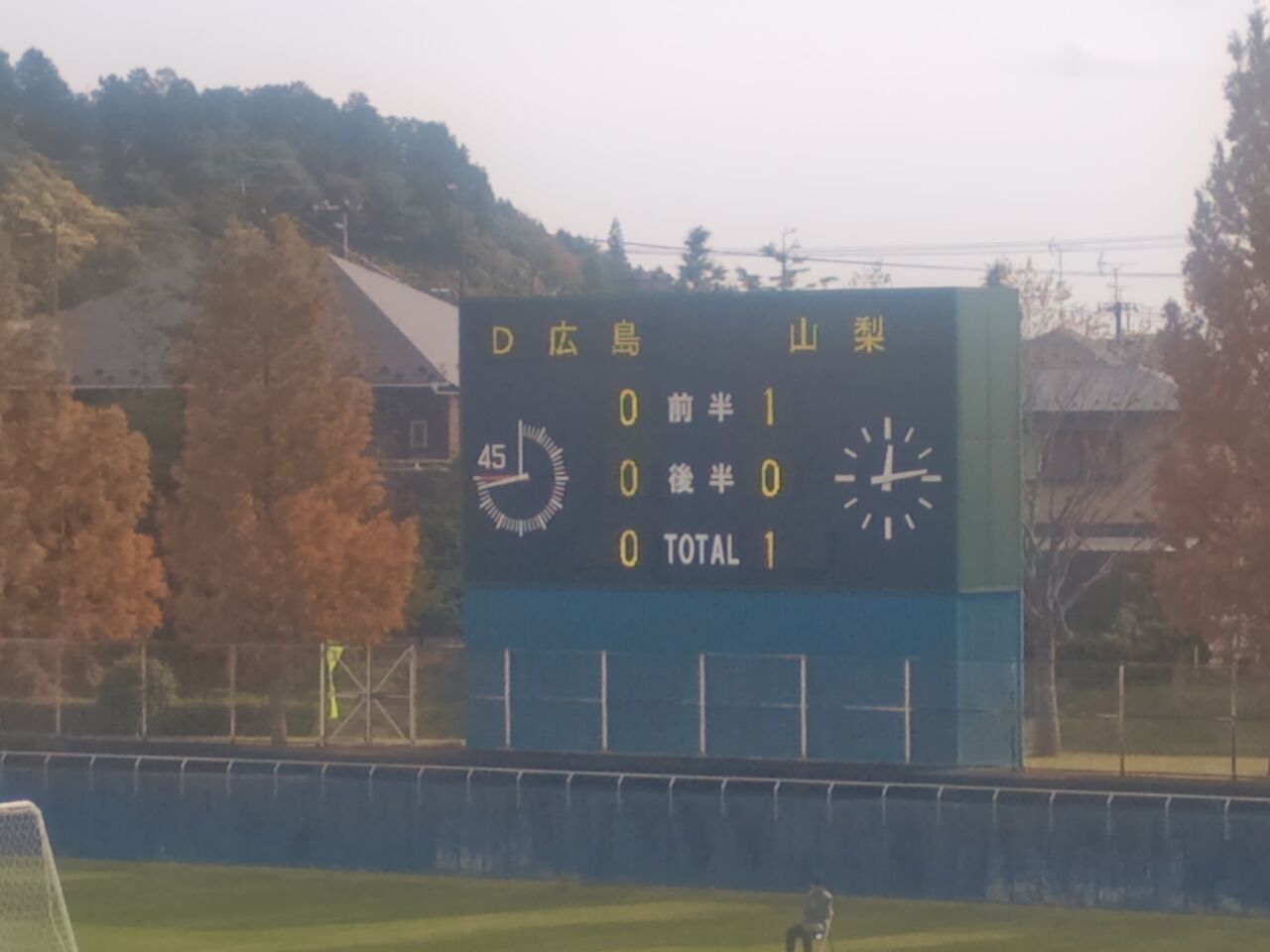 ・・・まぁ、前半の前半はD広島がペースを握ったが、そこから山梨が盛り返して先制。その後45分も互角だったが、山梨が1点を守り切っての勝利となった。