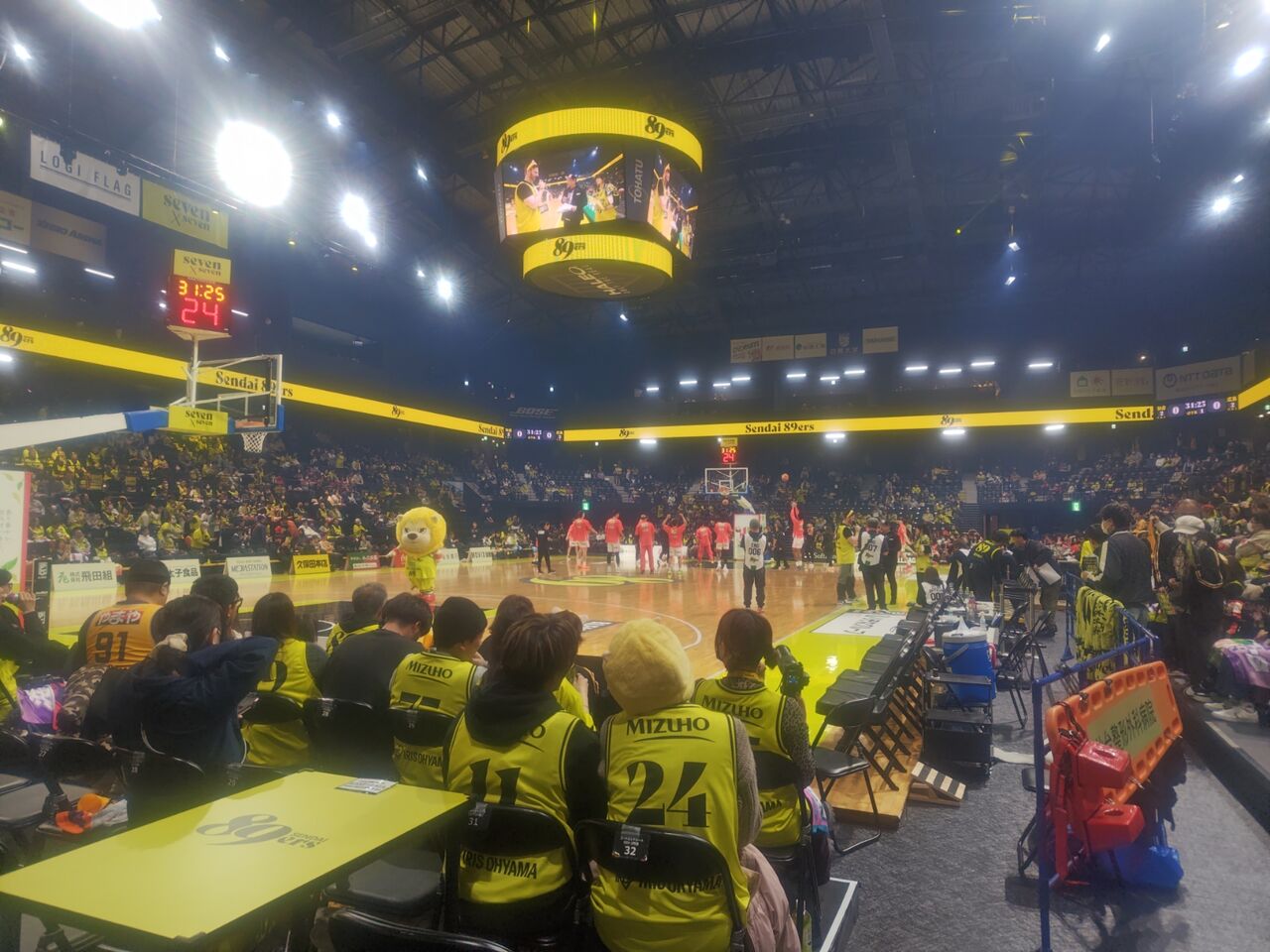 というわけで、今週の土日は、2023/24シーズンの覇者・広島ドラゴンフライズを迎え撃つ、ナイナーズ。◎にこにこみのりDAY 第10回B1リーグ戦第11節 仙台89ERS(黄)vs広島ドラゴンフライズ(白) 2025年11月15日(土)14時5分 ゼビオアリーナ仙台 主審:阿部聖 4044人(満員御礼)