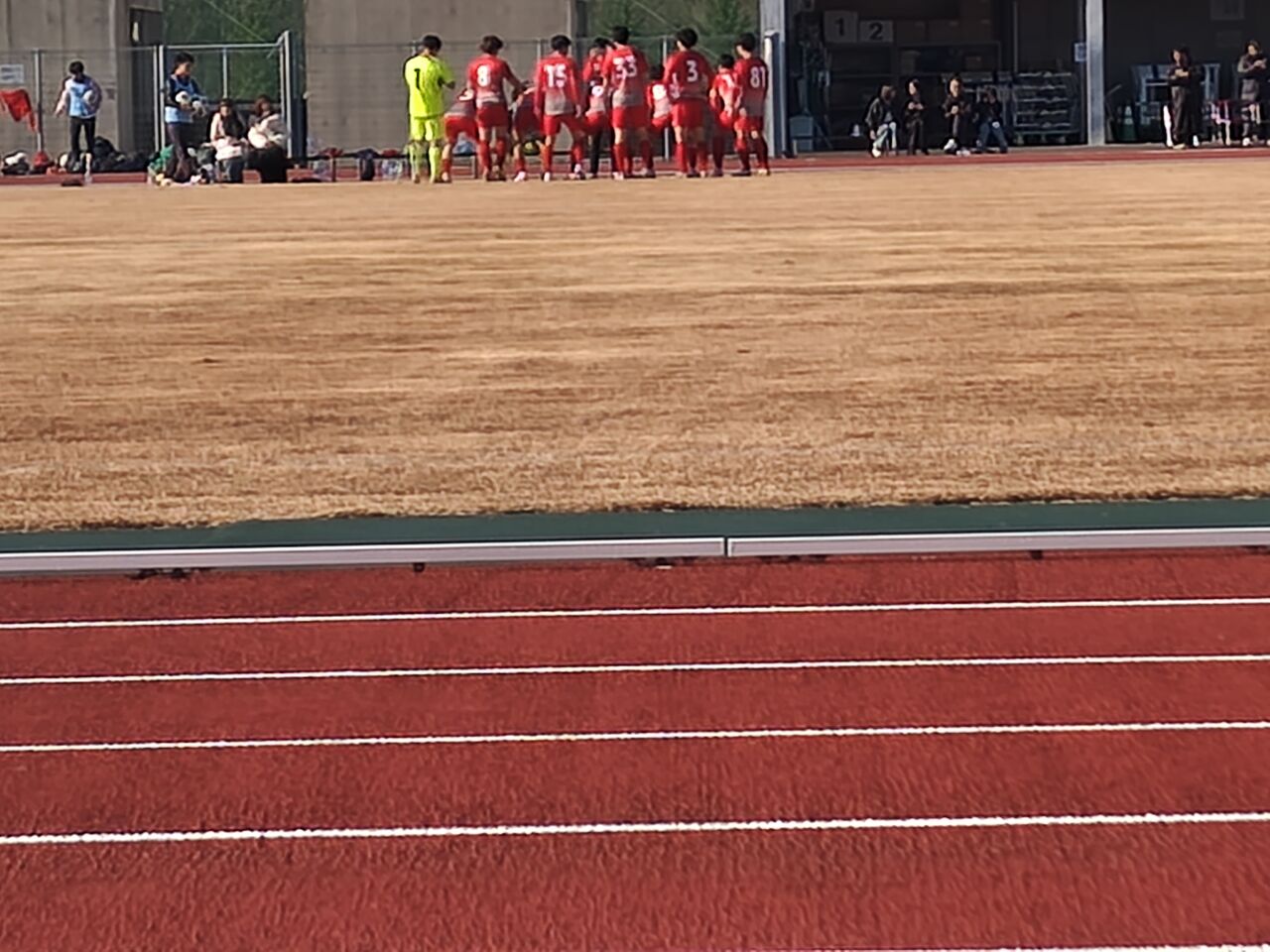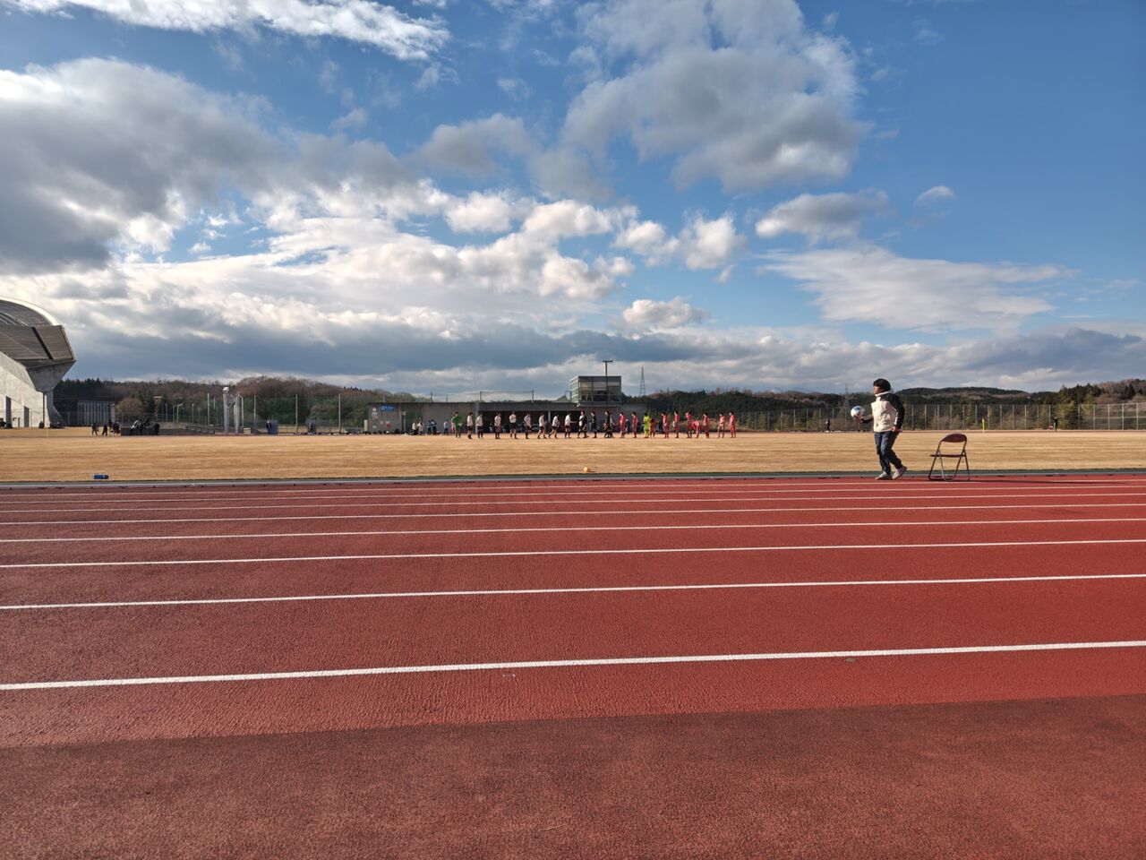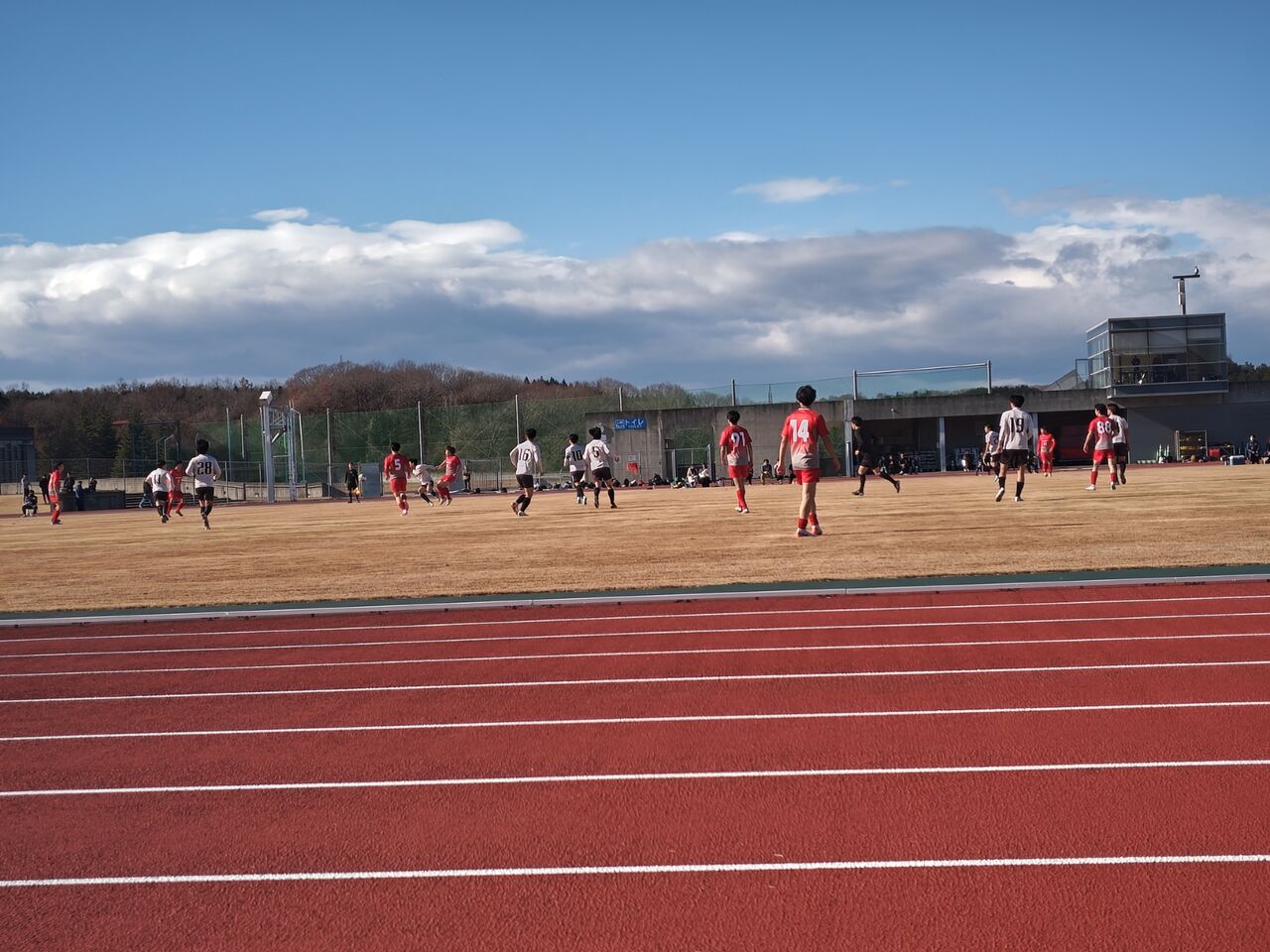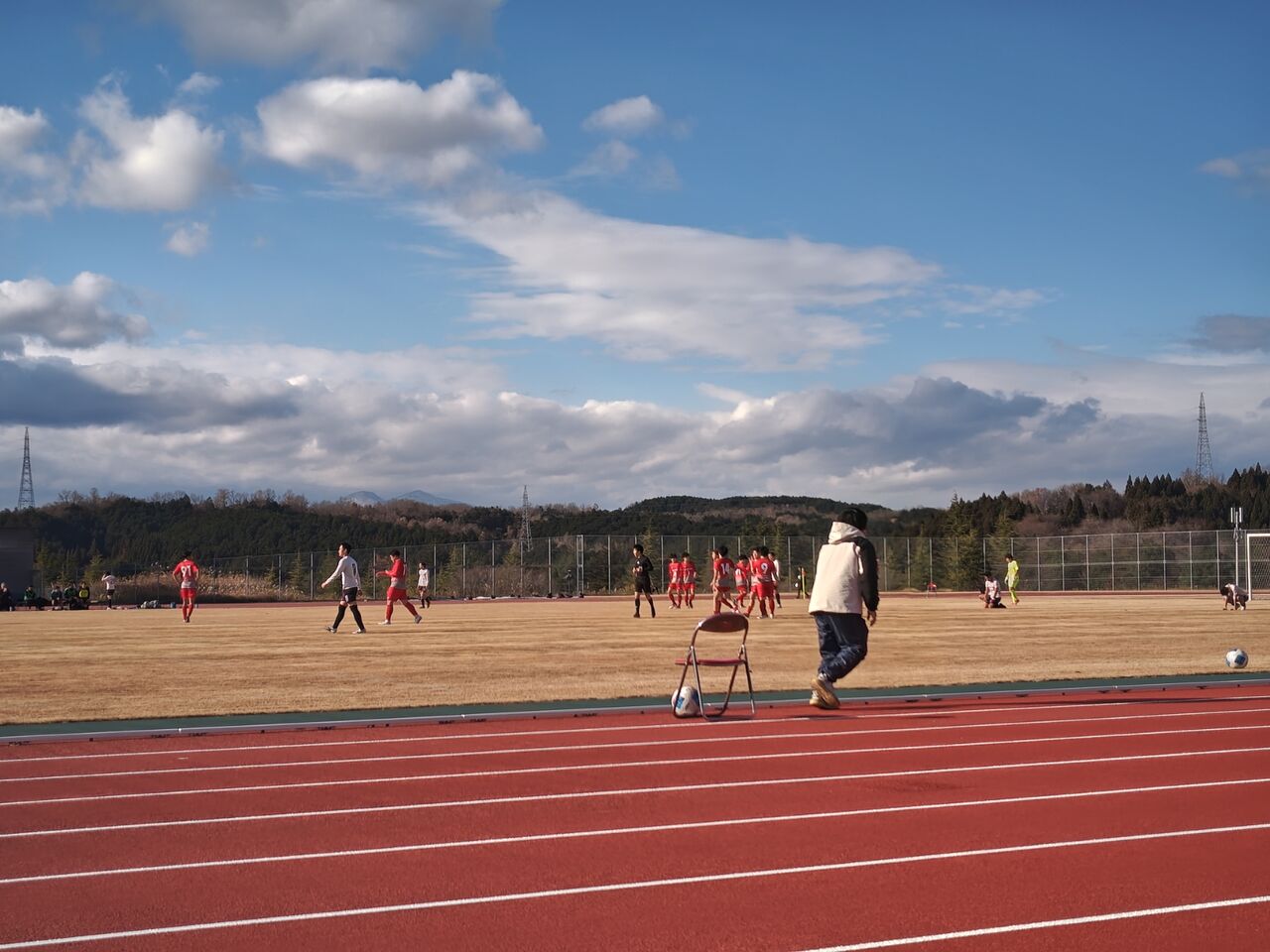 ○東北社会人サッカーリーグ二部南入替戦 山形BB(赤・山形県一部リーグ優勝)vsリコーインダストリー東北(白・東北二部南7位) 2025年12月7日(日)11時 宮城スタジアム補助グラウンド 晴 風:弱 30人(目測)