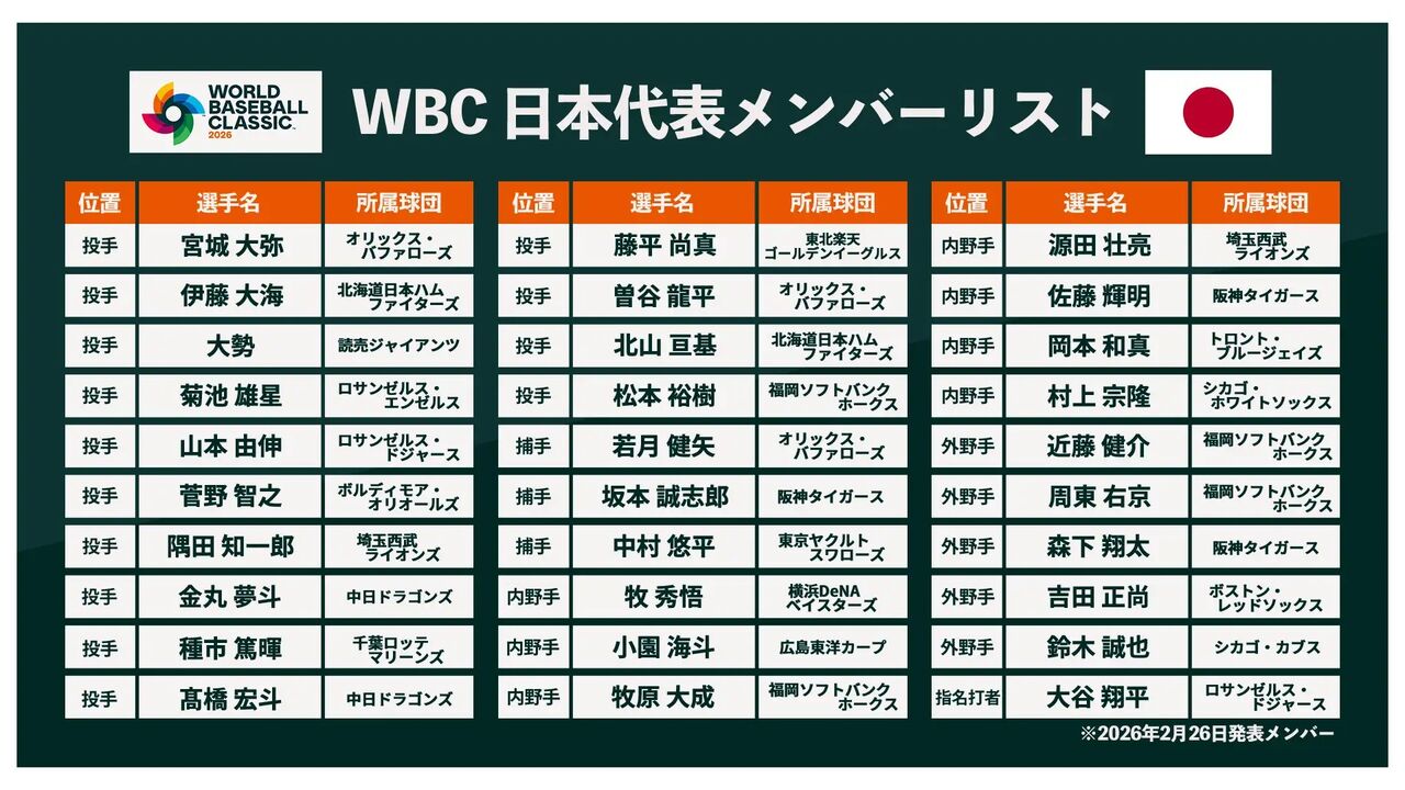 なんか、日本の野手の選び方を見てると、「大艦巨砲主義」というのが見え隠れして。。。細かいことのできる野手が一人くらいいてもいいような気もするが。。。なお、イーグルスからは、藤平尚真投手が選出。松井裕樹投手も選出されたが、故障により辞退した。