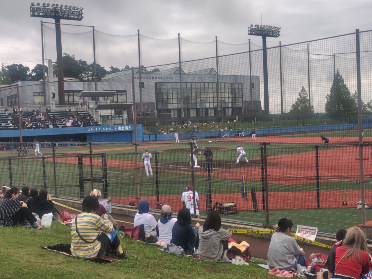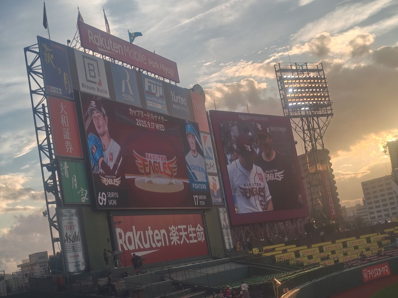 で、俺は金曜から仕事で、来週の金曜まで研修。勤務が0850−1800。駅裏なんで、宮城球場には道一本なんだが、着いたのが18時25分くらいか。