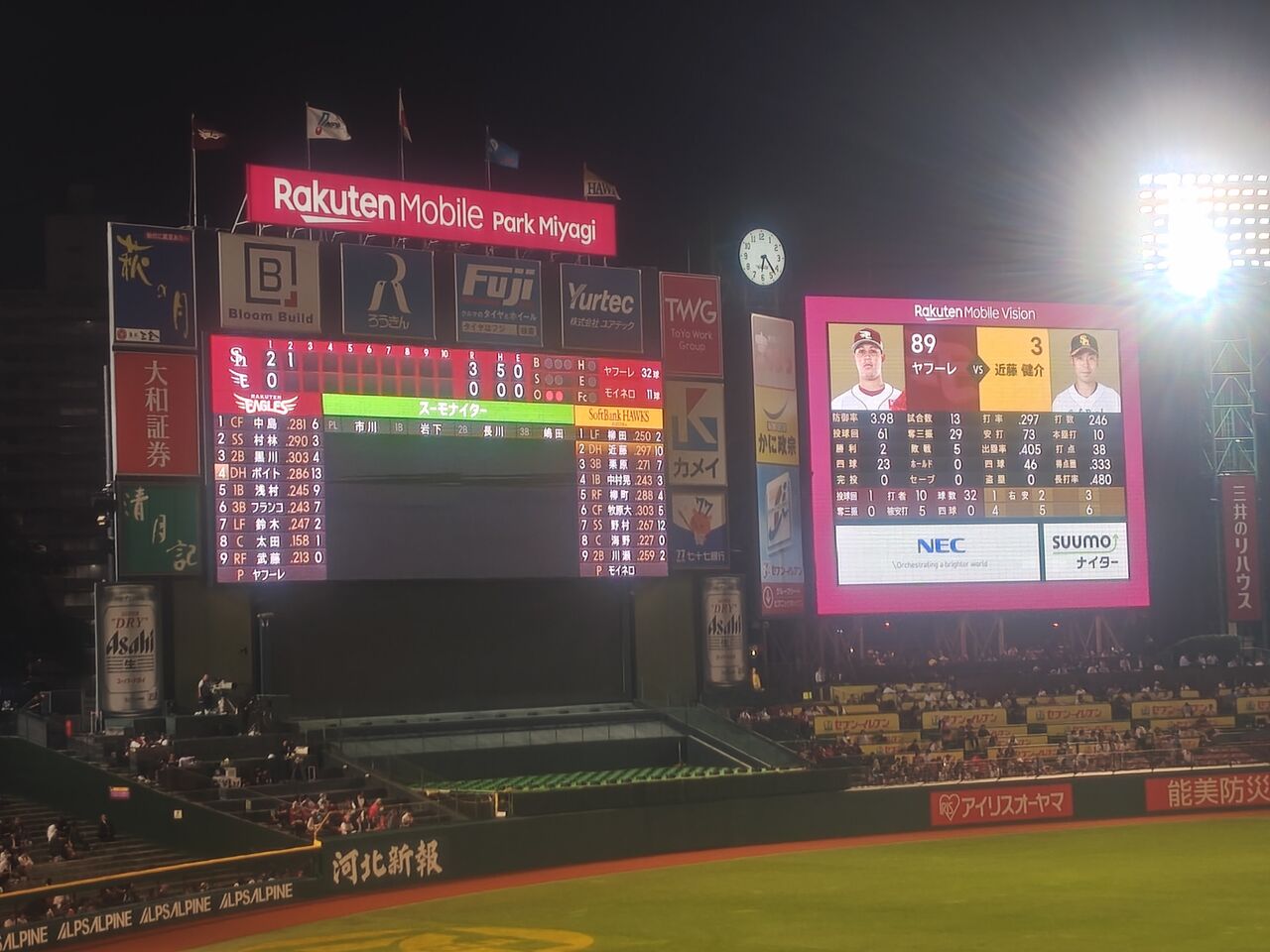 そんな中、イーグルスの先発は、よりにもよって、ミゲル・ヤフーレ。。。他におらんのか?!おらんのだろうな。。。