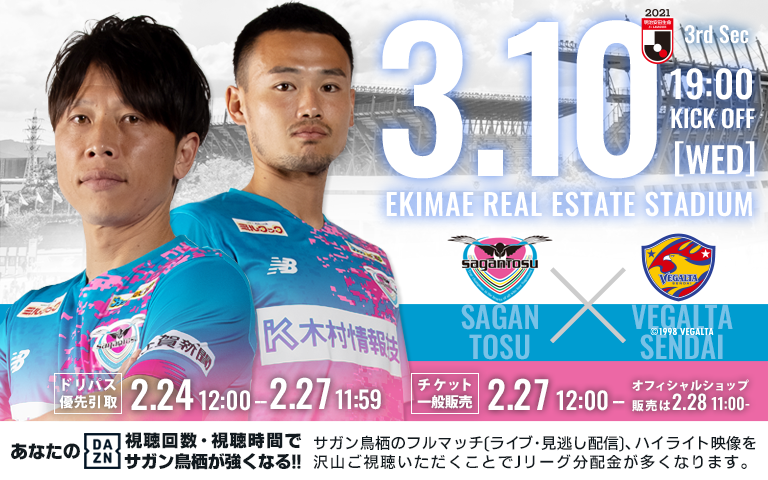 そろそろ初勝利が欲しいところだが。○明治安田生命第29回J1リーグ戦第3節 サガン鳥栖vsベガルタ仙台 2021年3月10日(水)19時3分 鳥栖スタジアム 晴 13.6℃ 51% 主審:松尾一 副審:聳城巧、越智新次 4審:西山貴生 4604人