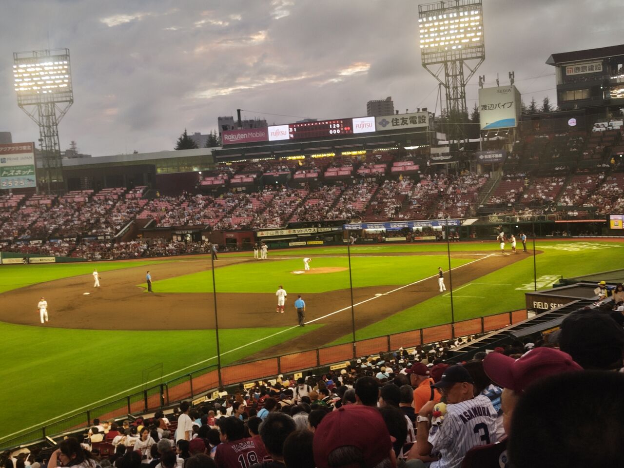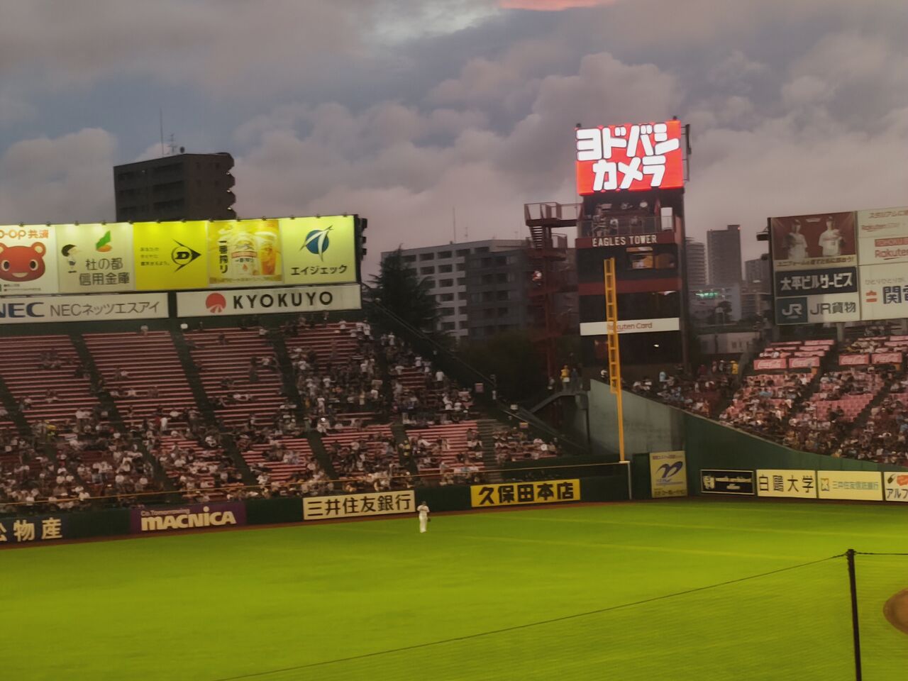 試合開始前の当日券発売状況を見る限り、満員御礼行くか?という状況だったが。。。◎田名部組100周年!たなぶナイター パーソルプロ野球パシフィックリーグ公式戦 東北楽天ゴールデンイーグルス(白)vsオリックス・バファローズ(黒) 22回戦(東北10勝12敗) 2024年9月2日(月)18時 県営宮城球場 曇一時小雨 球審:長井 21268人 3時間11分