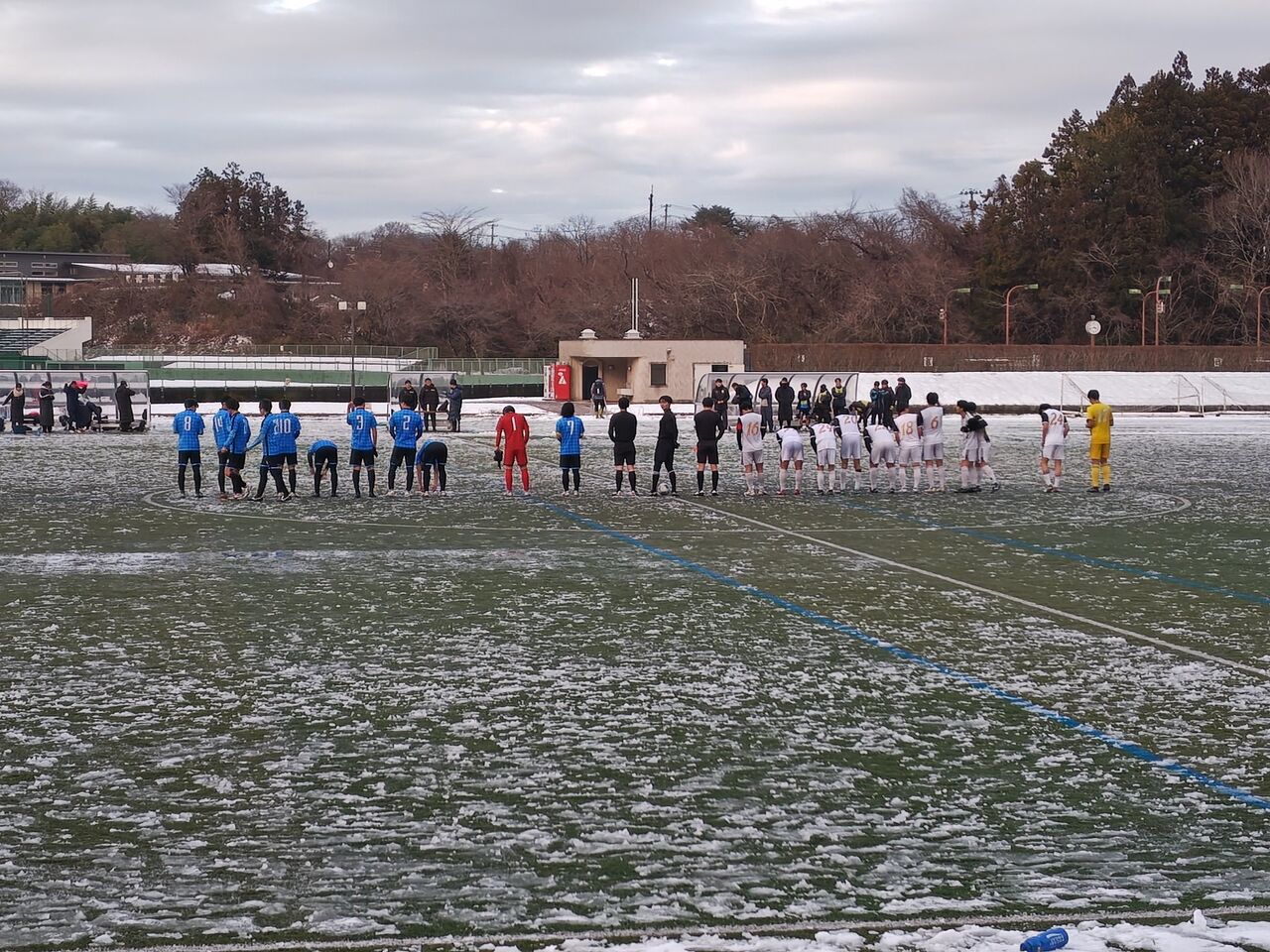 ◎河北杯争奪第30回宮城県サッカー選手権大会兼天皇杯JFA第106回全日本サッカー選手権大会宮城県代表決定戦二回戦 七ヶ浜サッカークラブ(青)vs仙台SASUKE.FC(白) 2025年12月14日(日)14時 松島運動公園サッカー場 晴 芝:不良 表面:水含み 30人(目測)*40分ハーフ