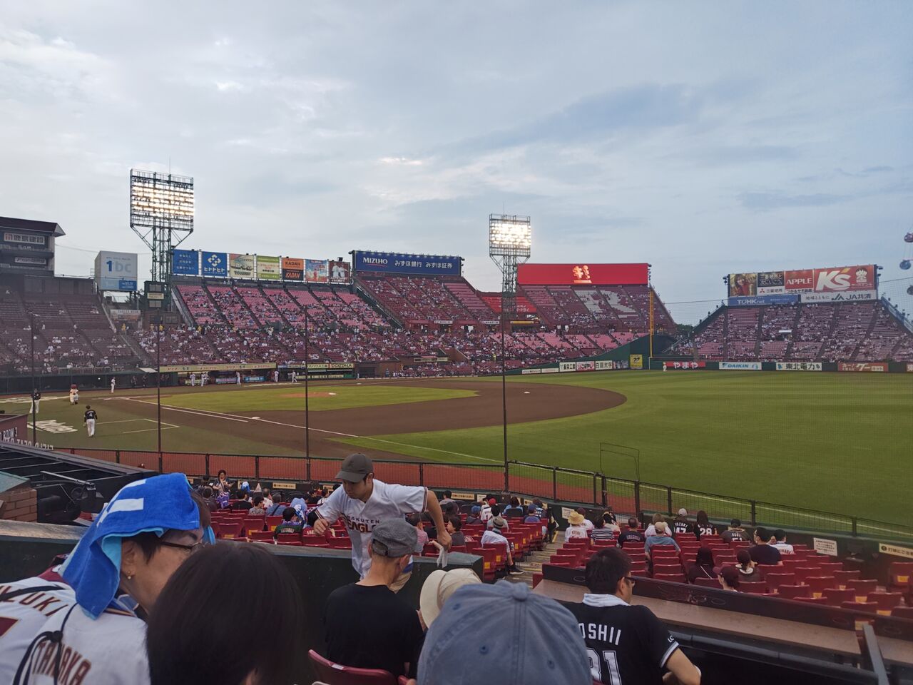 あの時は、東京から「ウィークエンドフリーきっぷ」で16000円で日帰り往復したっけ。あの時は右翼席(芝生席)だったもんで、三塁側に入るのは初めてw