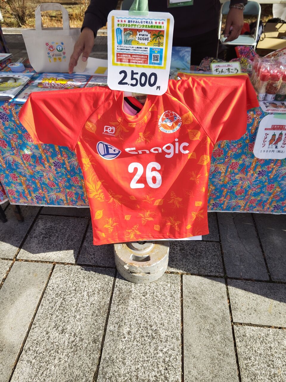試合の前には、場外で沖縄のPR。琉球デイゴスのユニが。(結局、今年もなでしこ2部参入戦には、エントリーすらさせてもらえなかったわけだが。しかも、2024年にはFC琉球も(デイゴスとは別に)女子チームを立ち上げるとかもうね。)