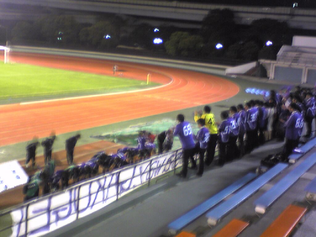 てなわけで、関東大学サッカーリーグは、4月5、6日に開幕し、今日は第二節。俺の職場からだと、駒沢の方が近いのだが、お目当ての選手が出るので、敢えて江戸川へ。しかし、地下鉄乗り換えた時点で、こちらで彼がベンチからも外れたことを知るorz。開幕戦ではスタメンで出たものの、前半37分で交代って、負傷か?!〇JR東日本カップ第82回関東大学サッカーリーグ戦第二節 流通経済大学(グレー)vs東京学芸大学(紫) 2008年4月9日(水)17時50分 江戸川陸上競技場 晴 風:弱 主審:甲山貴之 副審:柿沼亨、竹中健太 4審:山田純輝 350人 公式記録