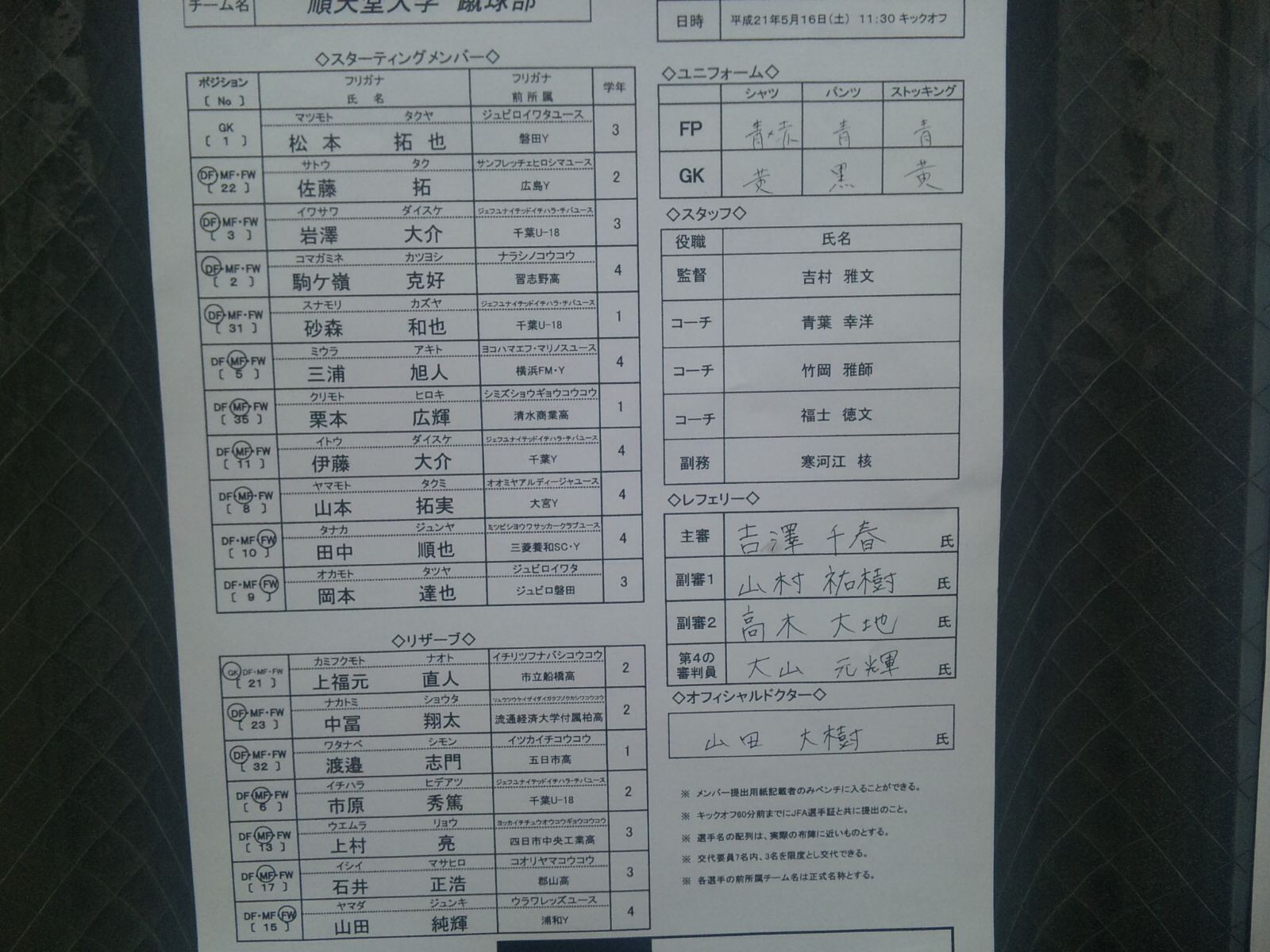 ○JR東日本カップ第82回関東大学サッカーリーグ戦二部第14節最終日 順天堂大学(青赤)vs東洋大学(白) 2009年9月16日(水)17時50分 江戸川区陸上競技場 晴 主審:福岡靖人 150人 公式